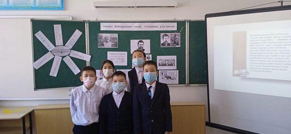 "Қарасу негізгі орта мектебі, мектепке дейінгі шағы ортаығымен" коммуналдық мемлекеттік мекемесінде Ахмет Байтұрсынұлының 150 жылдығына орай "Ахмет Байтұрсынұлы-қазақ халқының ұлы көсемі" атты тақырыпта тәрбие сағаты өткізілді.Мақсаты: Ахмет Байтұрсынұлы шығармашылығы, кітаптары, ғылыми еңбектері туралы мағлұмат беру