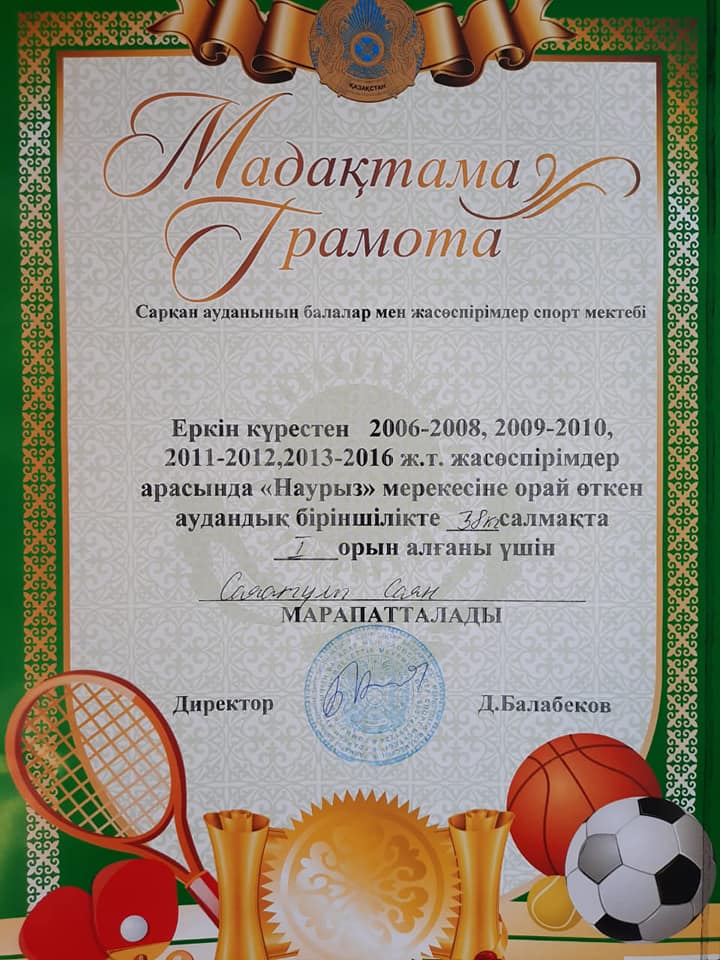 Сарқан ауданының балалар мен жасөспірімдер спорт мектебі ұйымдастырған Еркін күрестен 2006-2008, 2009-2010,2011-2012, 2013-2016 ж.т. жасөспірімдер арасында "Наурыз" мерекесіне орай өткен аудандық біріншілікке "Қарасу негізгі орта мектебі, мектепке дейінгі шағын орталығымен" коммуналдық мемлекеттік мекемесінен 4 оқушы қатысып, 38 кг салмақта Саятұлы Саян 1 орын, Кеңесбек Нұрасыл 2 орын иеленді