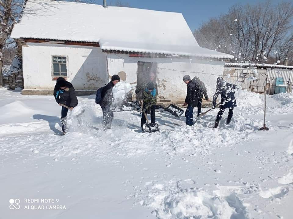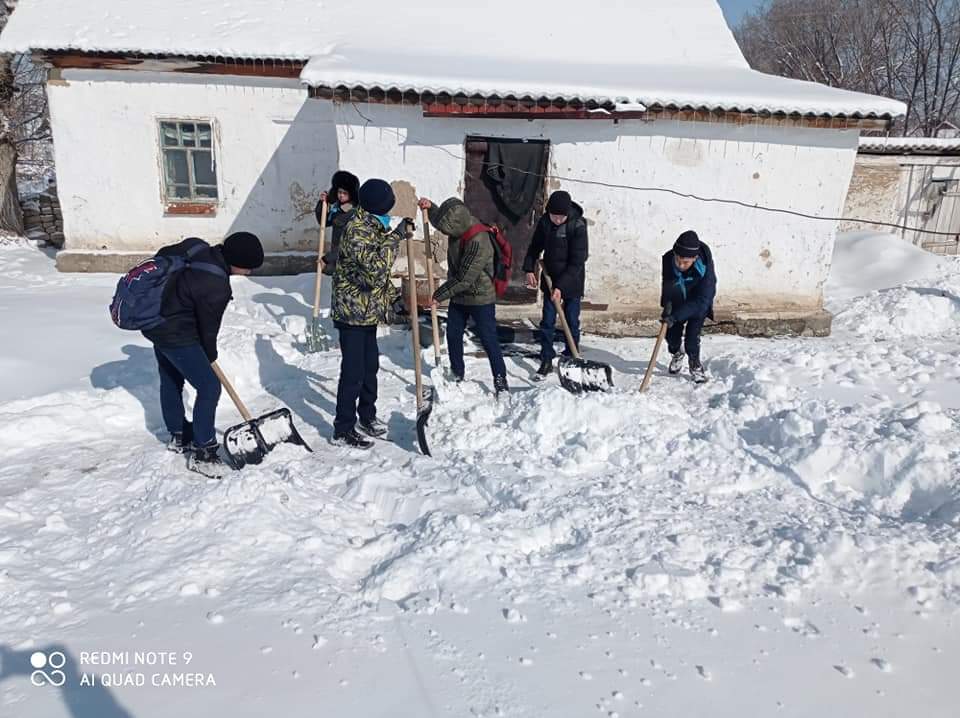15 март 2021 0 1 2 3 4 5 "Адал ұрпақ" мүшелері "Қарасу негізгі орта мектебі,мектепке дейінгі шағын орталығымен" отдела образования Кербулакского районанің "Адал ұрпақ" мүшелері Еңбек ауылында тұратын жалғыз басты қария Бикурманова Айымхан апаның үйінің айналасын қардан тазалап берді.